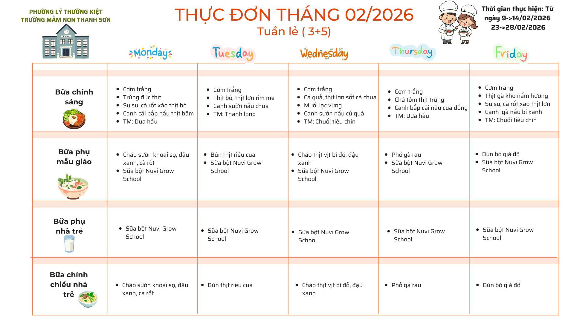 Thực đơn tháng 1/2026 ( Tuần chẵn)